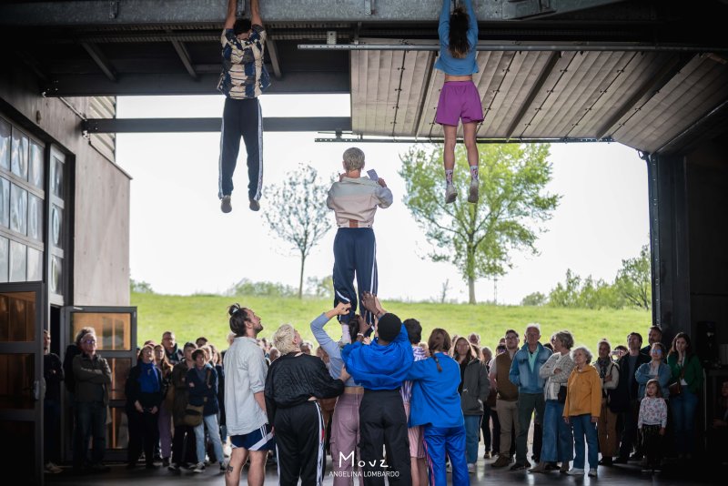 La horde dans les pavés est un collectif franco-suisse d’intervention acrobatique fondé en 2020, qui défend une écriture collective et développe une recherche autour de la déambulation en espace public en utilisant la ville elle-même comme support de jeu. Ce collectif s’inspire des techniques de cirque, du parkour, de la grimpe urbaine et des danses de rue. Avec leurs performances, il s’agit de faire de la rue une expérience et de faire expérience de la rue. Les balades façonnées par les espaces parcourus donnent lieu à des spectacles en constante évolution.